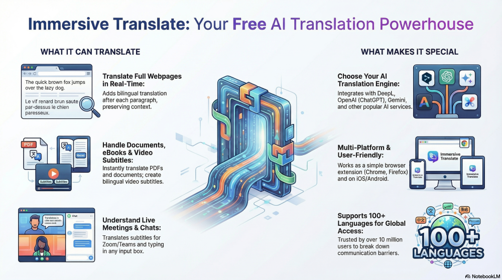 This is the exact problem Immersive Translate, a free, AI-powered tool used by over 10 million people, was built to solve. It works directly in your browser to make language barriers disappear. But beyond simple webpage translation, some of its most powerful features are completely unexpected.
